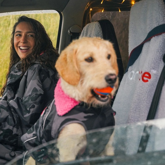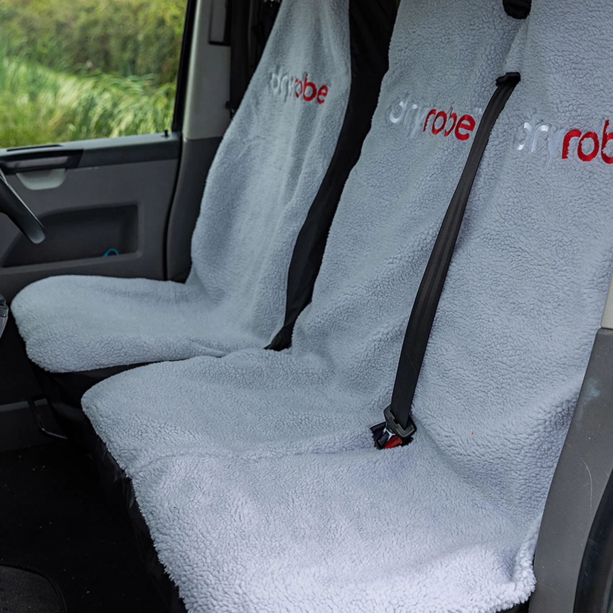 Dryrobe Double Car Seat Cover is a waterproof car and van seat cover designed for people coming back from the beach, surfing, or other watersports. It protects your upholstery from water, sand, and mud while adding extra warmth in colder months. It fits most double front seats in cars and vans.