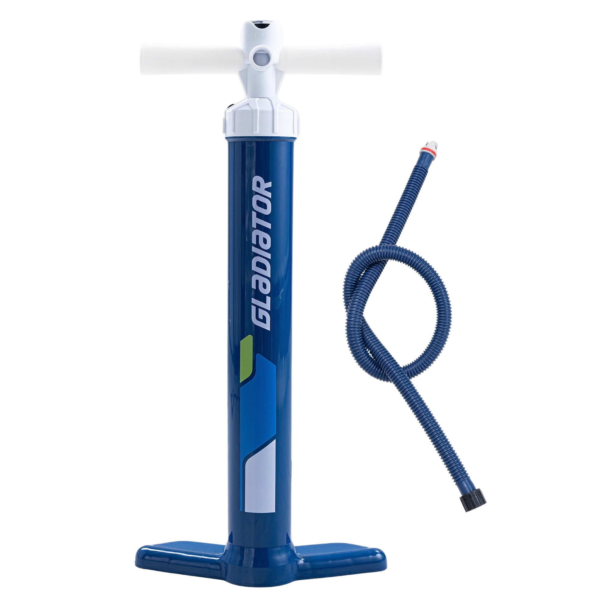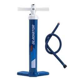 This is a standard Gladiator hand pump designed for inflatable SUP boards. The double action system pushes air on both strokes, which speeds up the initial inflation stage and makes setup more efficient.