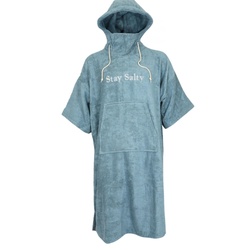 The poncho is made from bamboo fabric, which feels noticeably softer than standard cotton. It absorbs water three to four times better and dries much faster, making it practical for frequent sessions and cold-weather use.
