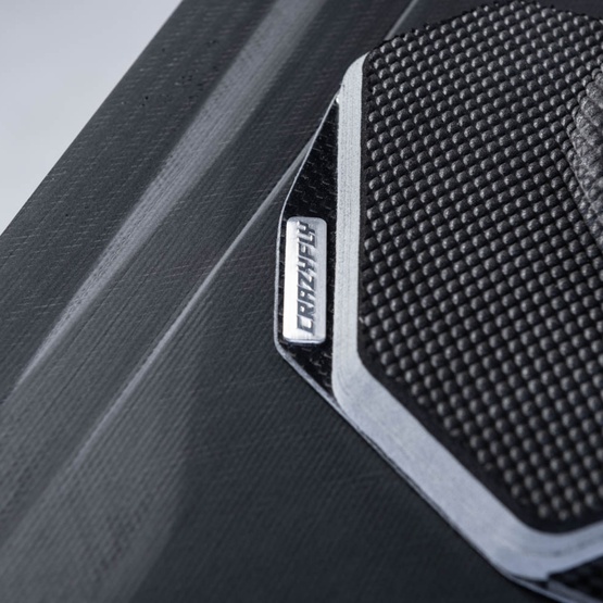 A match made for each other. Given the strength and performance the Max board offers, it comes at a staggering light weight of 2,2 kgs. This is 0.6 kg less than the Raptor Extreme board. Carboniq binding is the lightest binding in the world and weighs only 0,66 kgs. The Max and Carboniq mark another milestone at CrazyFly with our never ending chase for lighter and better performing products. Creating a perfect match, the Max board and Carboniq binding plus all board accessories come at amazing weight of 3,1 kgs complete, ready to ride.
