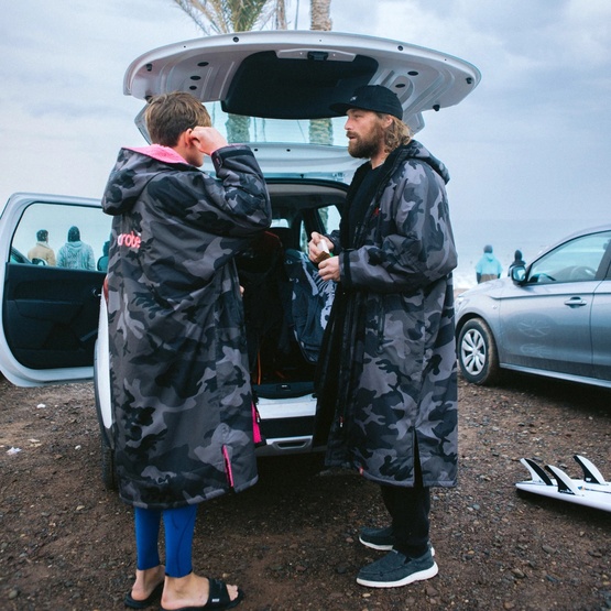 Dryrobe Advance L/S is a men’s changing robe, designed for watersports and outdoor use. It works well after surfing, windsurfing, wingfoiling, kitesurfing, cold-water swimming, or camping, whenever you need warmth, protection from rain, and a comfortable way to get changed outdoors. It features a waterproof outer layer, a warm fleece lining, and a loose fit that makes changing clothes outdoors easier.