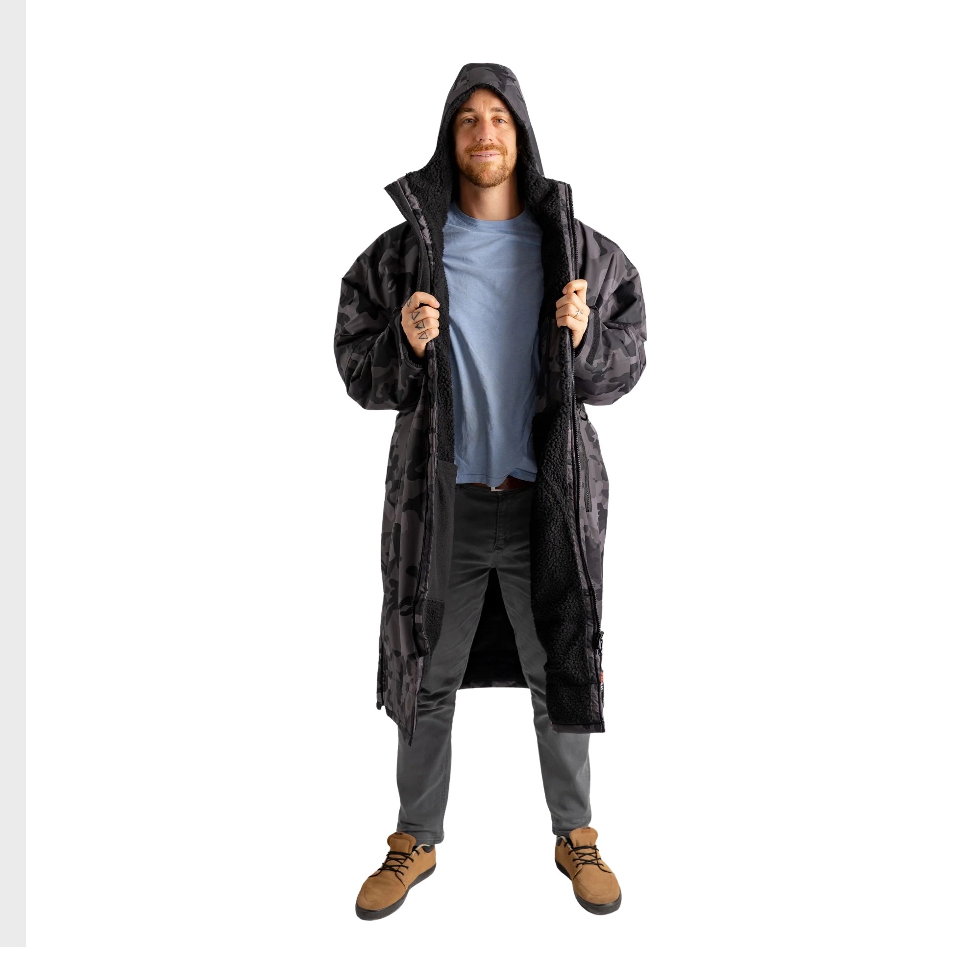 Dryrobe Advance L/S is the original waterproof changing robe, built for demanding conditions. Its oversized fit gives you enough room to change comfortably on the beach, in the car park, at the spot, or anywhere else outdoors. The long sleeves add extra protection when the temperature drops, while the full fleece lining - including the hood - helps you warm up faster after getting out of the water.