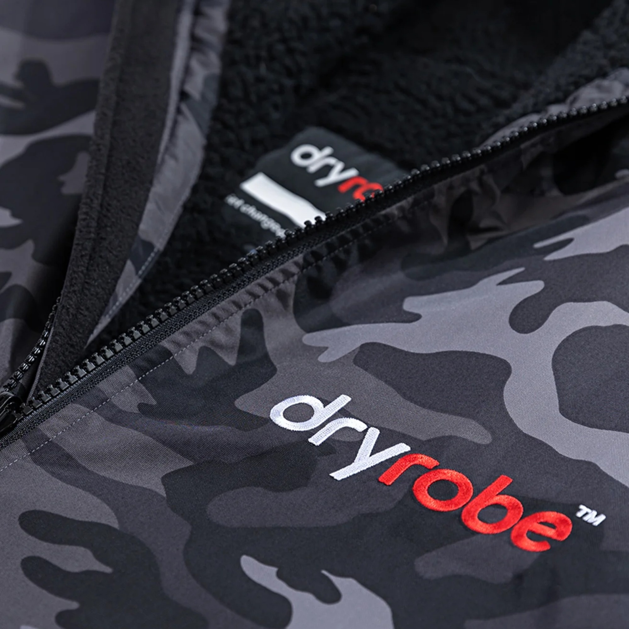 The outer fabric, Dryrobe ExoV-Shell™, is made from 100% recycled nylon and offers waterproof protection up to 25,000 mm. It is finished with BIONIC-FINISH® ECO Durable Water-Repellent, which helps water bead off the surface instead of soaking into the fabric. The outer shell also provides a full barrier against wind, which makes a noticeable difference after a cold session or in bad weather.