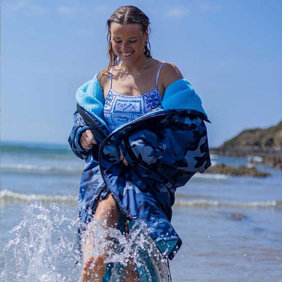 The Dryrobe Advance Changing Robe is the original long sleeve changing robe, made for use in harsher weather conditions. It works well not only after getting out of the water, but also during early starts, beach walks, campsite mornings or evenings by the campfire. The long cut and full sleeves provide extra coverage when the temperature drops.