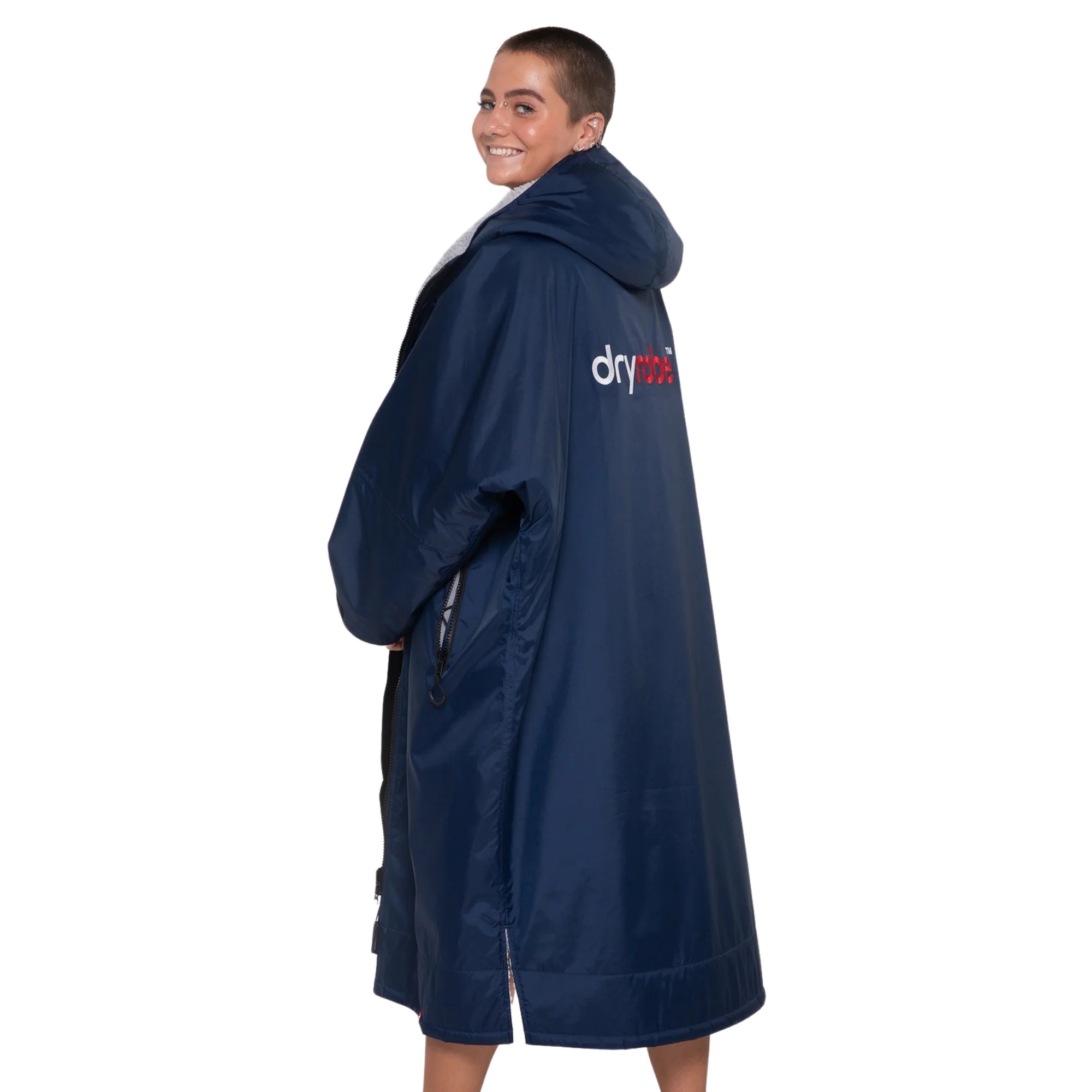 The Dryrobe Advance is made from 100% recycled fabrics certified to the Global Recycle Standard. The outer shell uses recycled nylon, while the fleece lining is made from recycled polyester. It is finished with a PFC-free BIONIC-FINISH ECO water-repellent treatment. The focus here is on long-term durability and lower waste, which is why Dryrobe backs the Advance model with a 3-year performance guarantee covering defects in materials and workmanship.