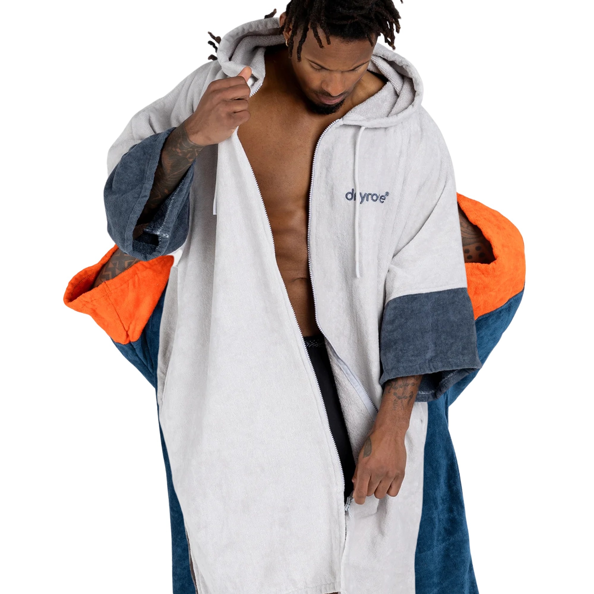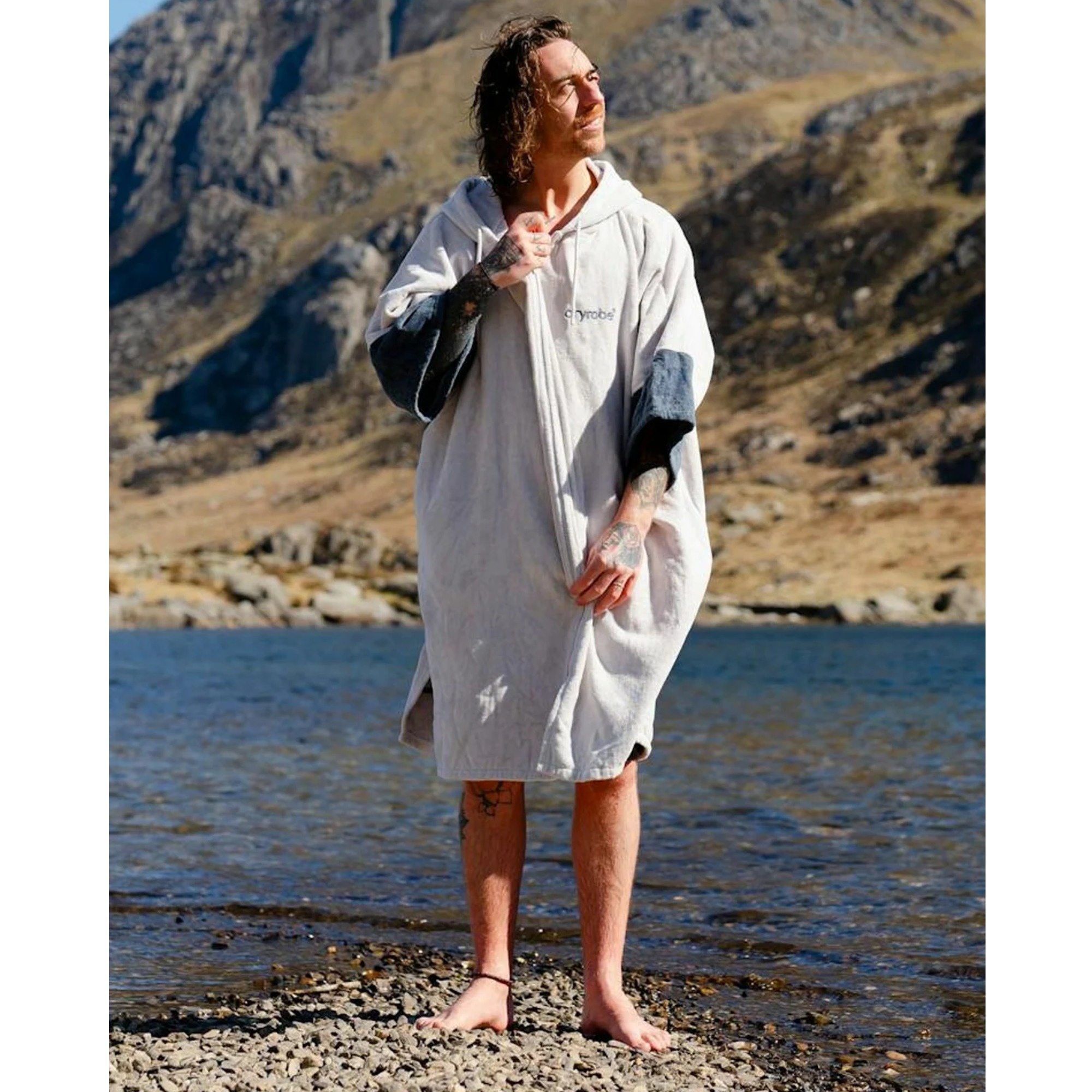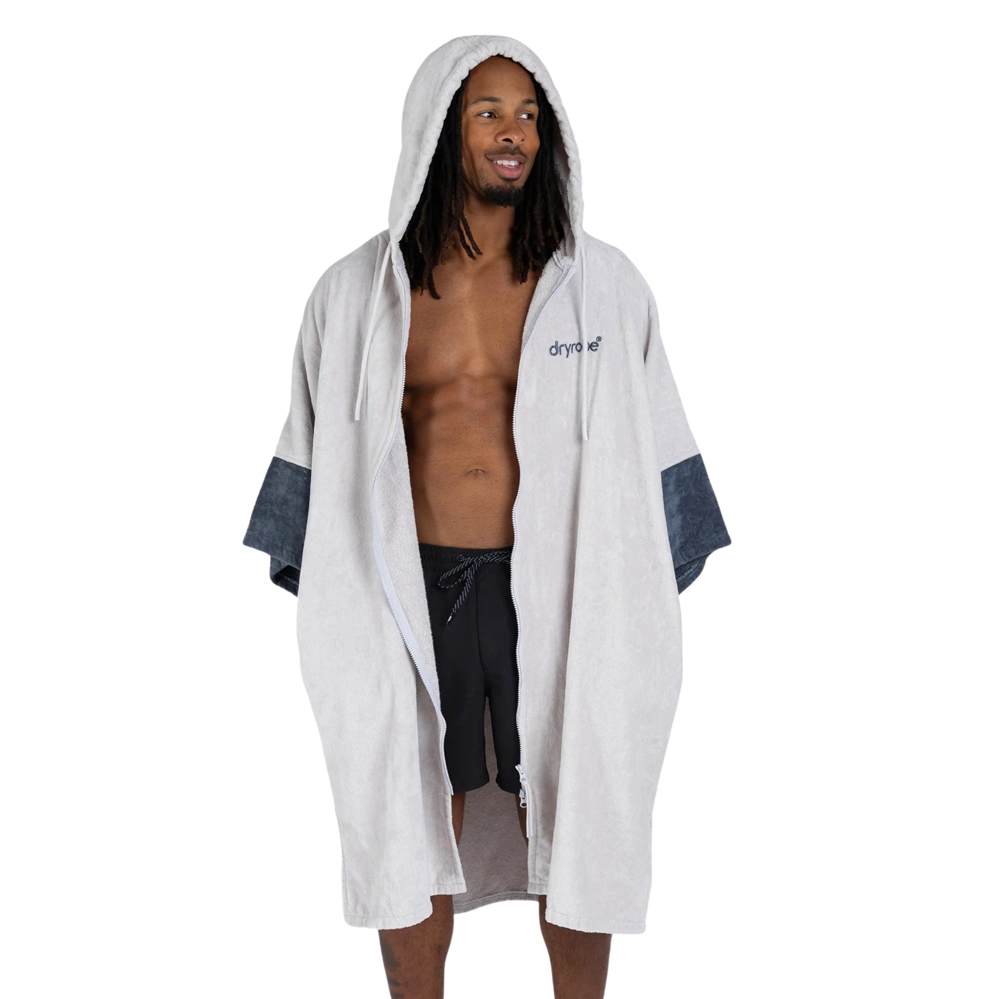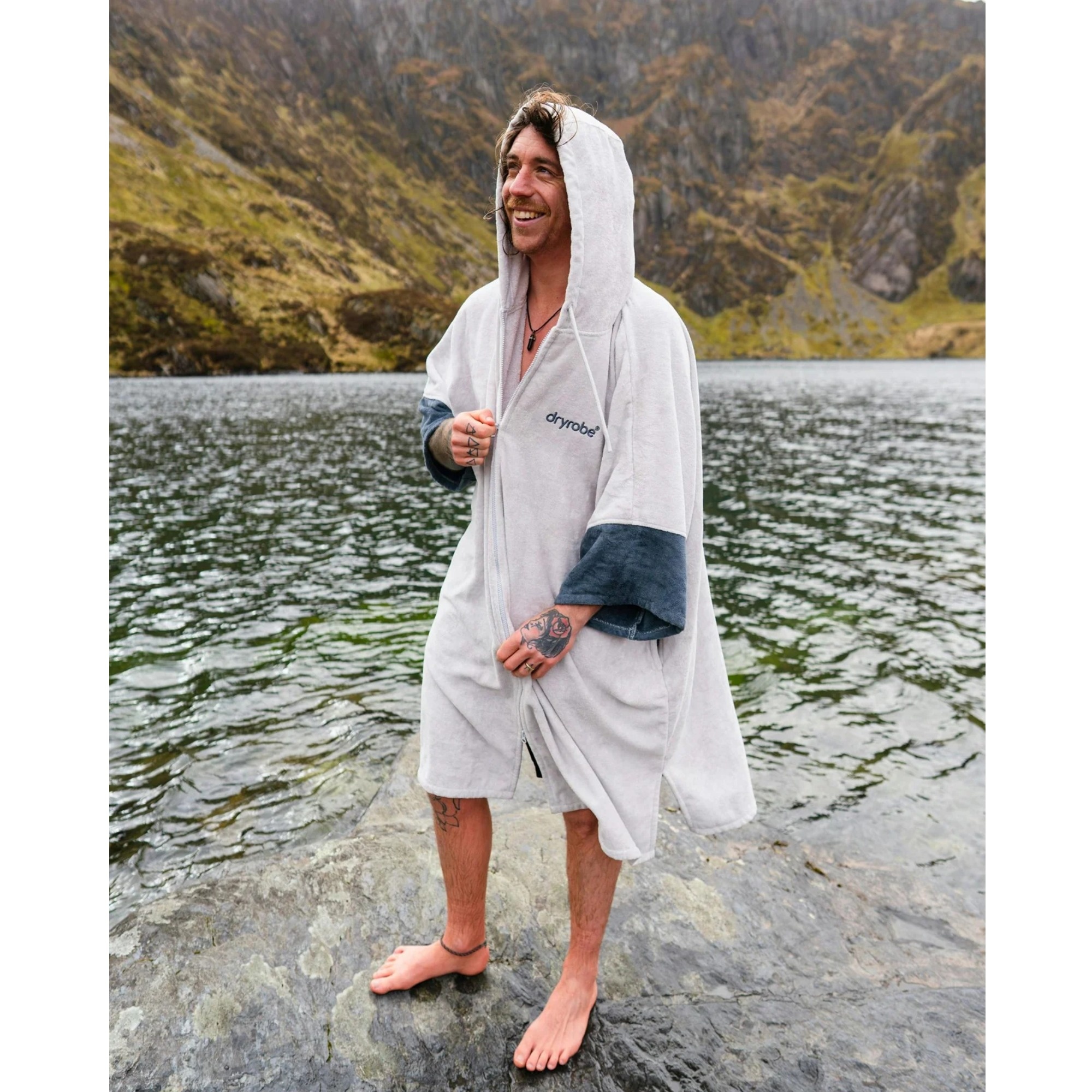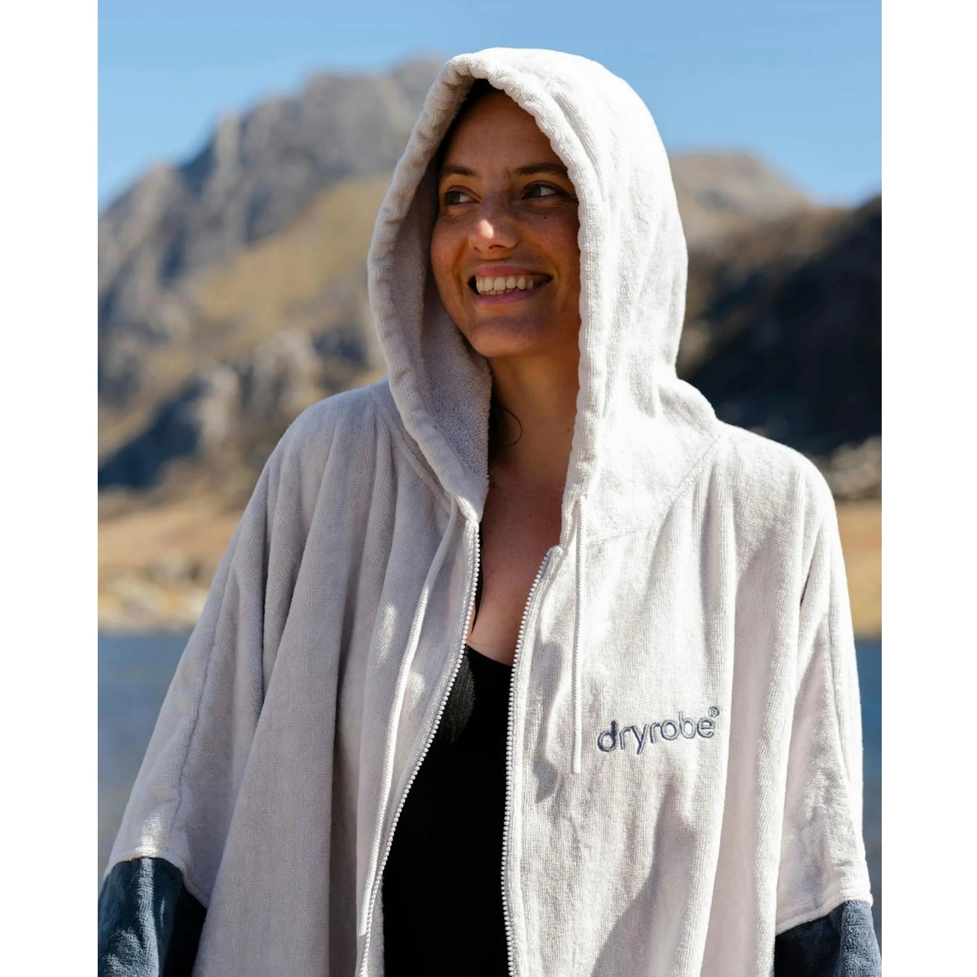 Dryrobe Full-Zip Organic Towel Robe is a unisex towel changing robe for warmer days by the water, after surfing, swimming, SUP and other outdoor activities. It stands out with a full-length YKK zip, absorbent organic cotton and an easy-change fit that lets you get changed comfortably while staying covered at the beach or poolside.