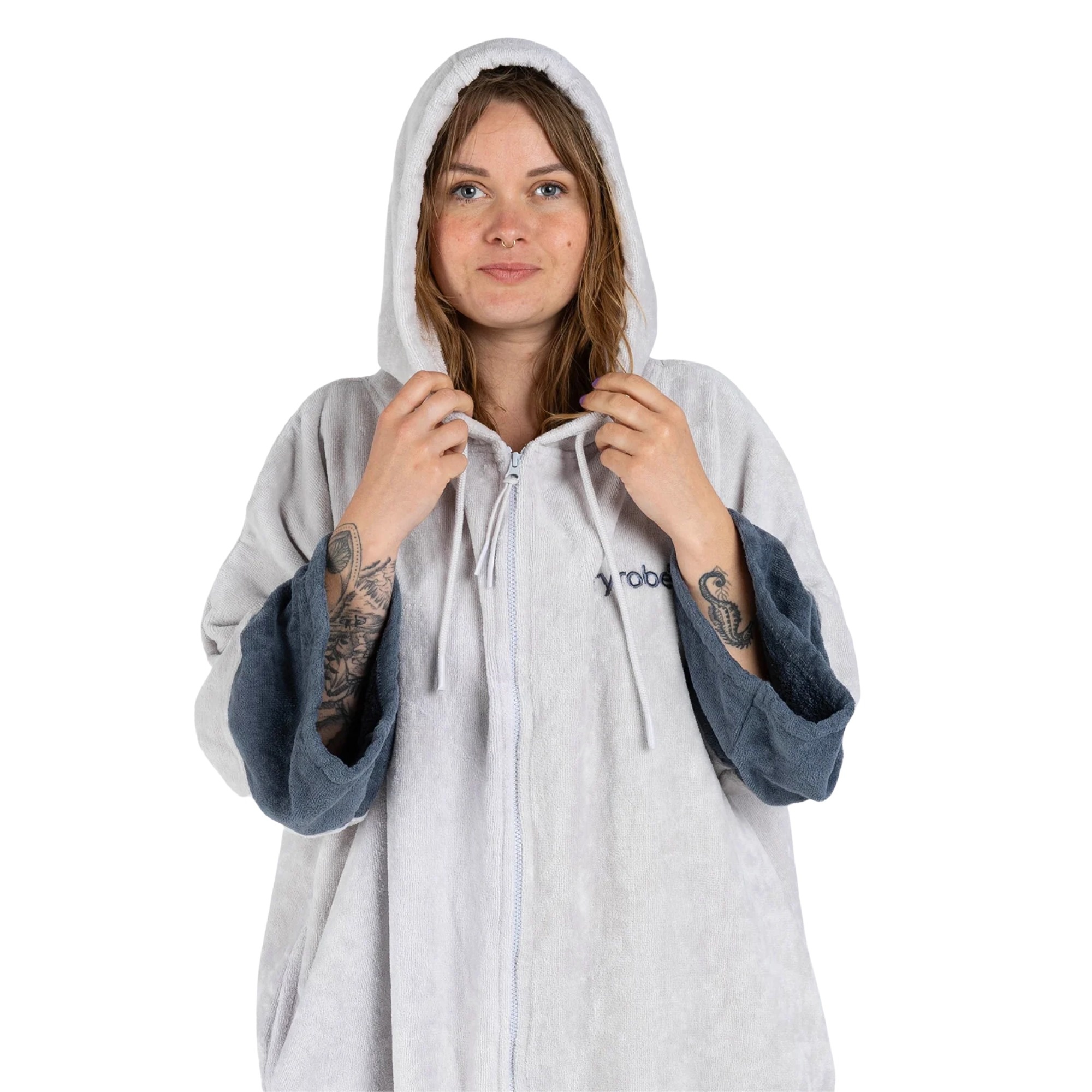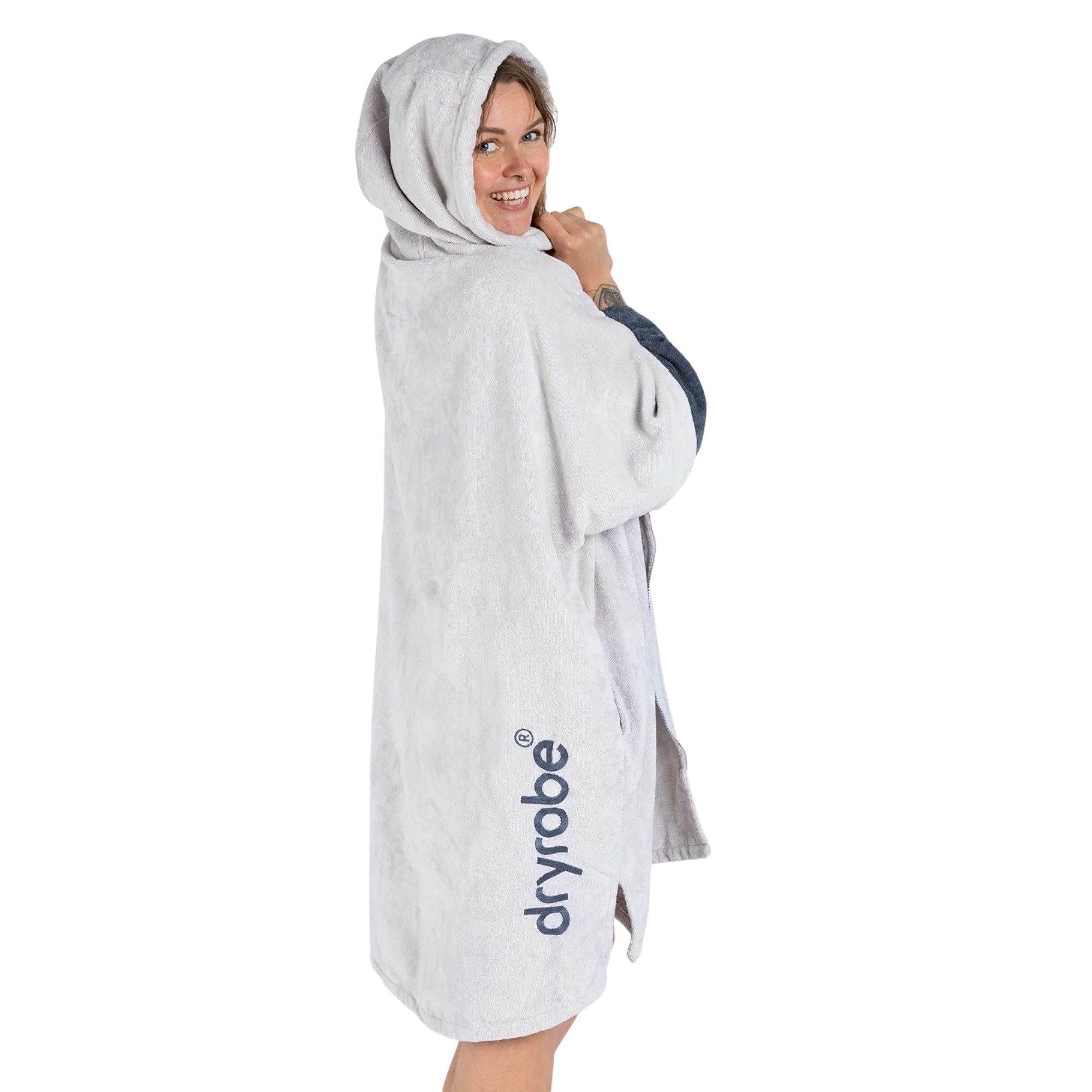 The Dryrobe Full-Zip Organic Towel Robe is built for spring, summer and poolside changing. The longer sleeves help reduce draughts and provide better coverage while changing. Side splits improve freedom of movement, while the adjustable hood and hip pockets add everyday convenience.