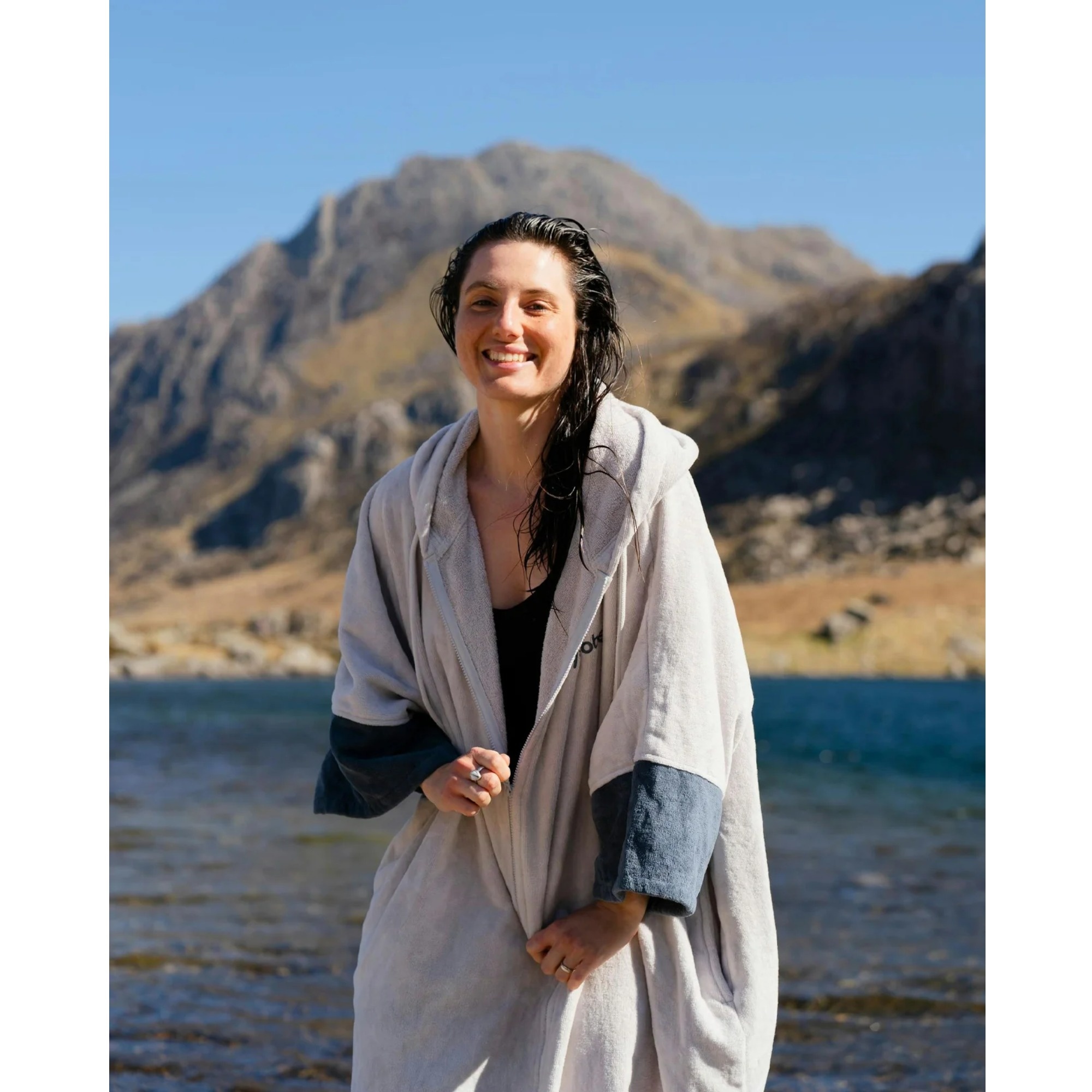 One of the key features of this robe is the full-length front-opening YKK Vislon zip. It makes the robe easy to put on and take off, which is especially useful when you want to throw it on quickly after getting out of the water or change without struggling with a wetsuit or swimwear. The cut still leaves enough room to change underneath while staying covered.