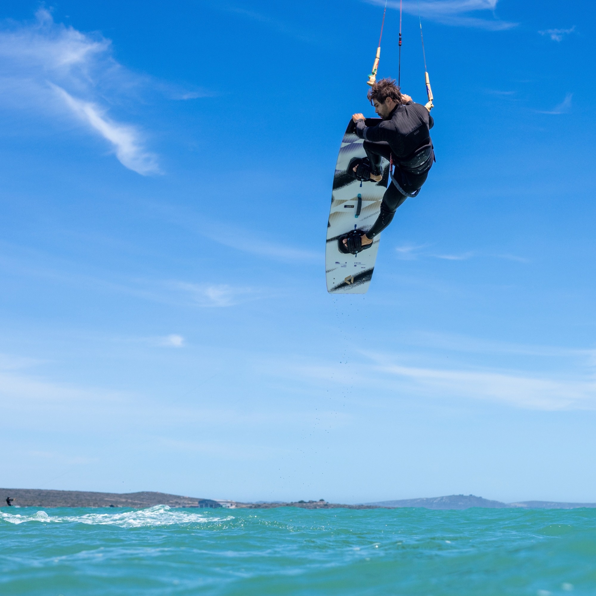 The flat rocker improves low wind efficiency and helps you maintain speed without constantly working the kite. The board gets going early, carries speed well and feels easy to ride in conditions where other boards may already start slowing down.