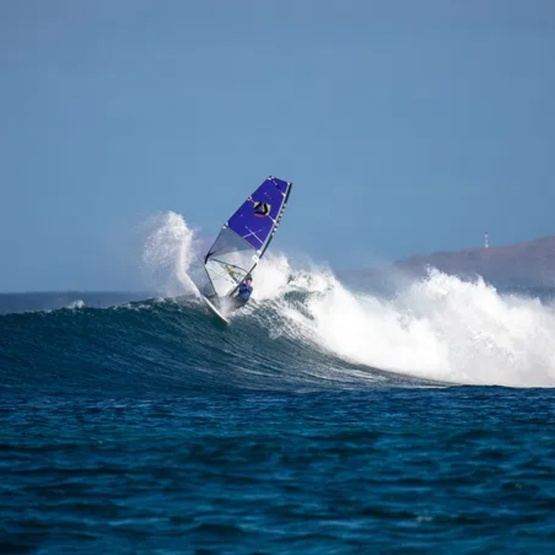 Thanks to its ultra-light construction and the use of Carbon XPly in high-load areas (clew, head, and tack), the sail minimizes stretch and ensures fast power transfer. The slightly more flexible XPly in the body controls the release of power, making the Super_Hero D/LAB highly responsive, dynamic, and stable in gusts. The result is the lowest possible “sailing weight” – no other wave sail feels lighter in your hands.