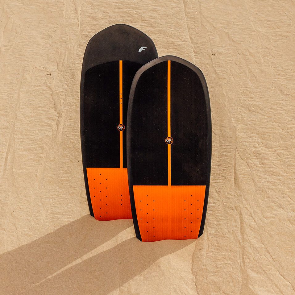 The range includes three sizes: 110×44 cm, 120×46 cm and 130×47 cm. All sizes are equipped with a full deck pad. The 120 and 130 also have inserts for three footstraps. The 110 is our strapless-dedicated model and therefore has no inserts. All feature the Twin-Tracks system for maximum compatibility with any foils.