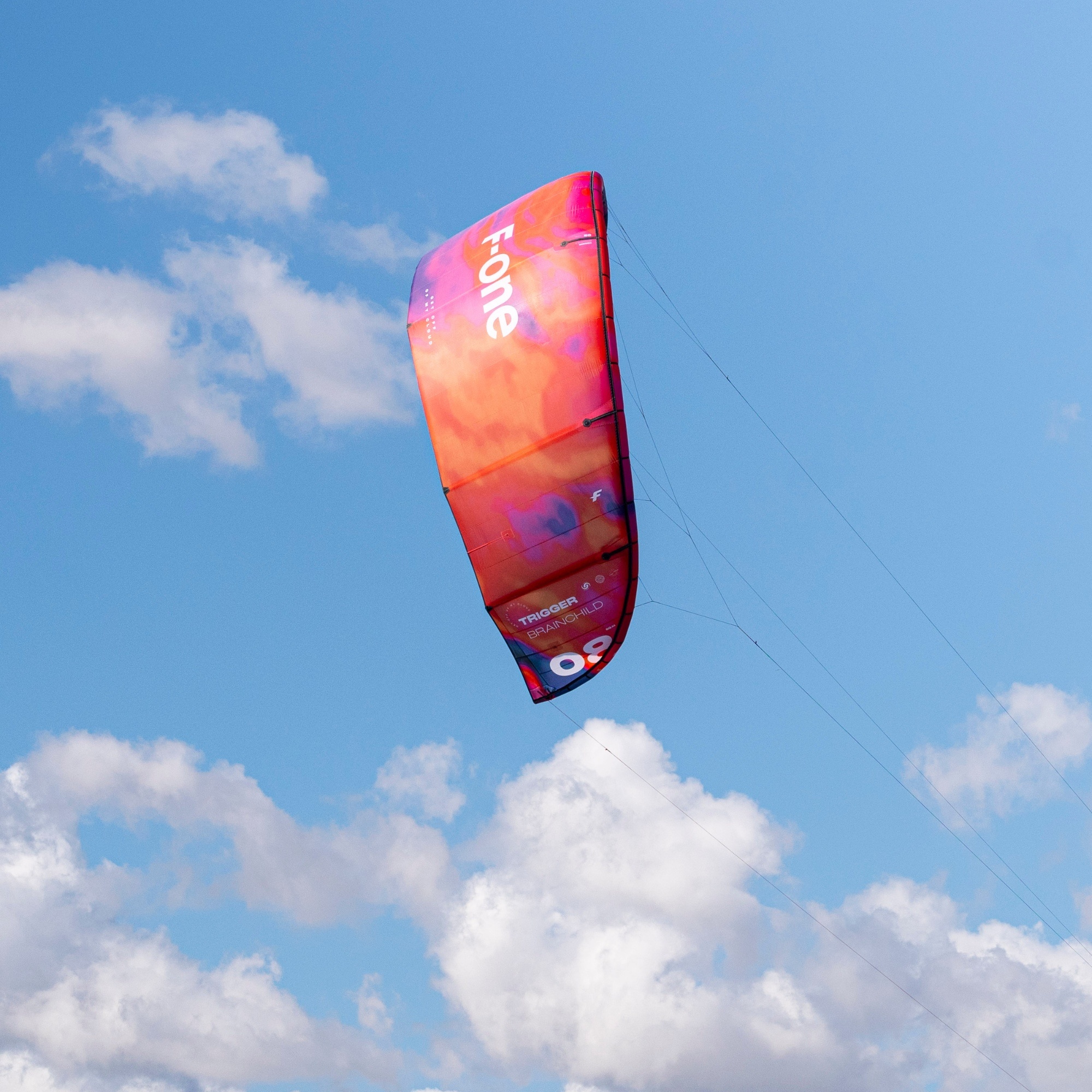 F-ONE Trigger Brainchild is a Big Air kite designed for high, effortless jumps and long hangtime. Built with Brainchild technologies, a high aspect ratio, and a five-strut structure, it delivers precise control, light bar pressure, and confidence-inspiring loops.