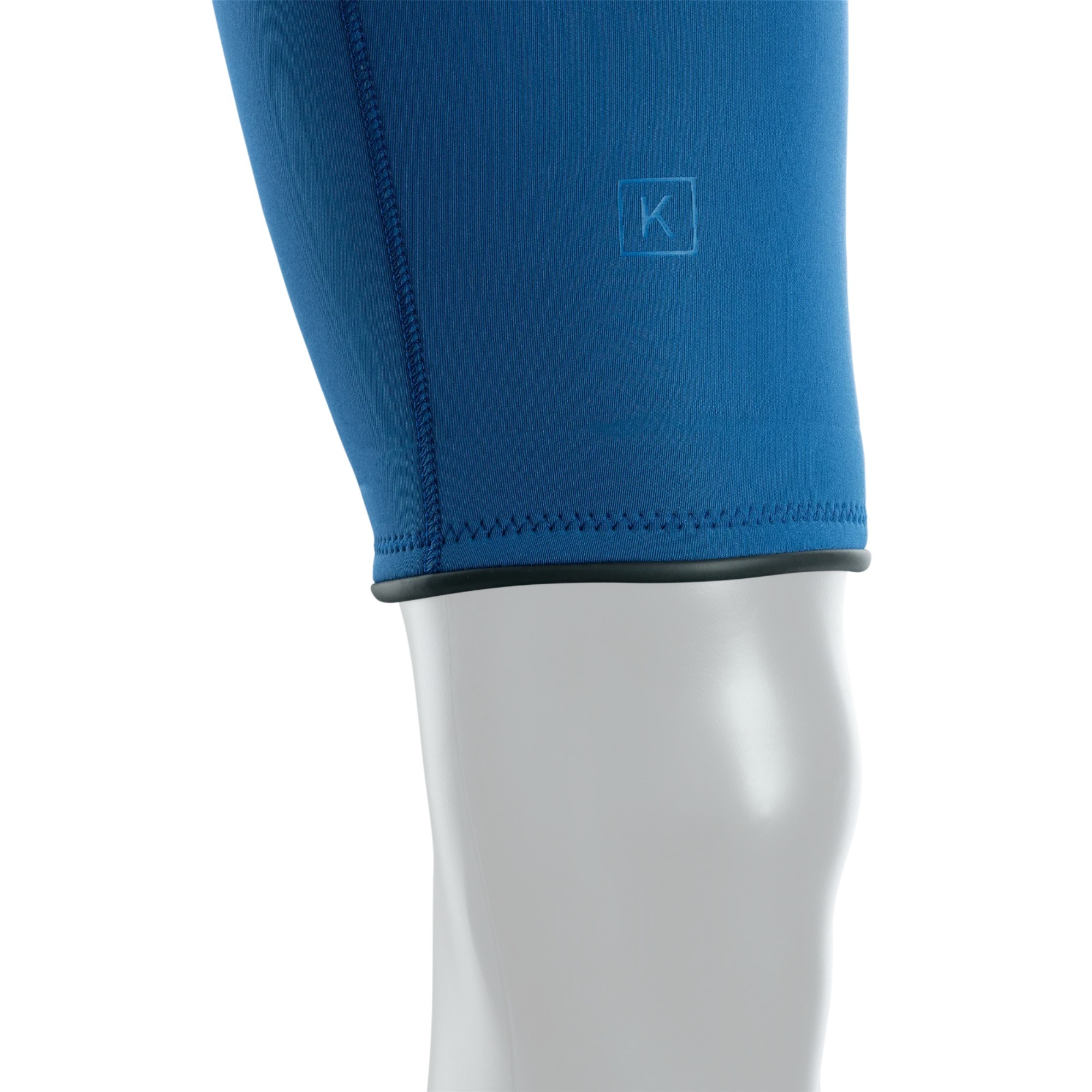 Highly elastic neoprene tape reinforces the seams on the lower body and commonly stressed cuff area from the inside