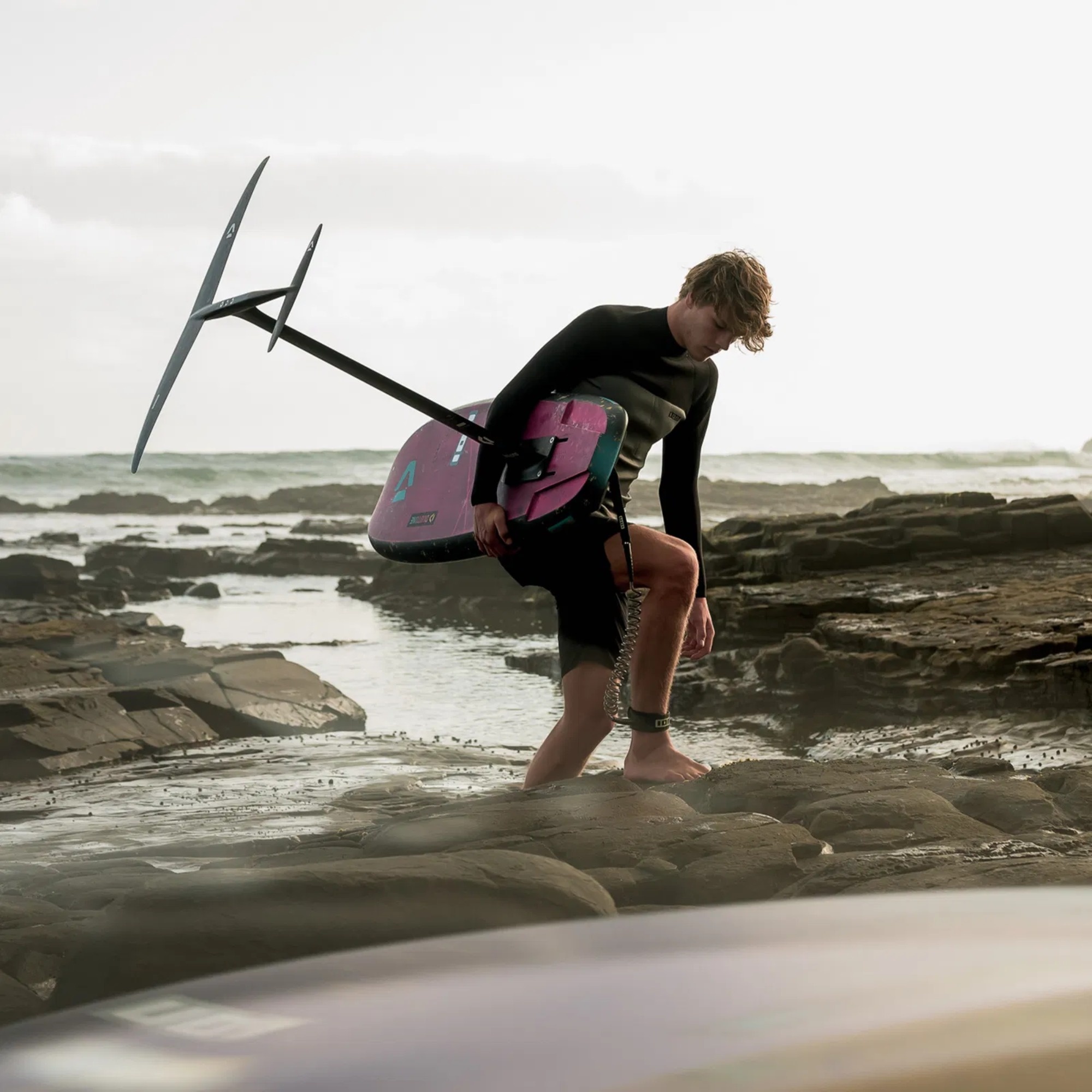 In wingfoiling you want a leash that stays short and tidy most of the time, but still gives you enough play when you fall and the board gets pulled away. The Hybrid concept is built around that idea: minimized overall length with extra leeway when you need it.