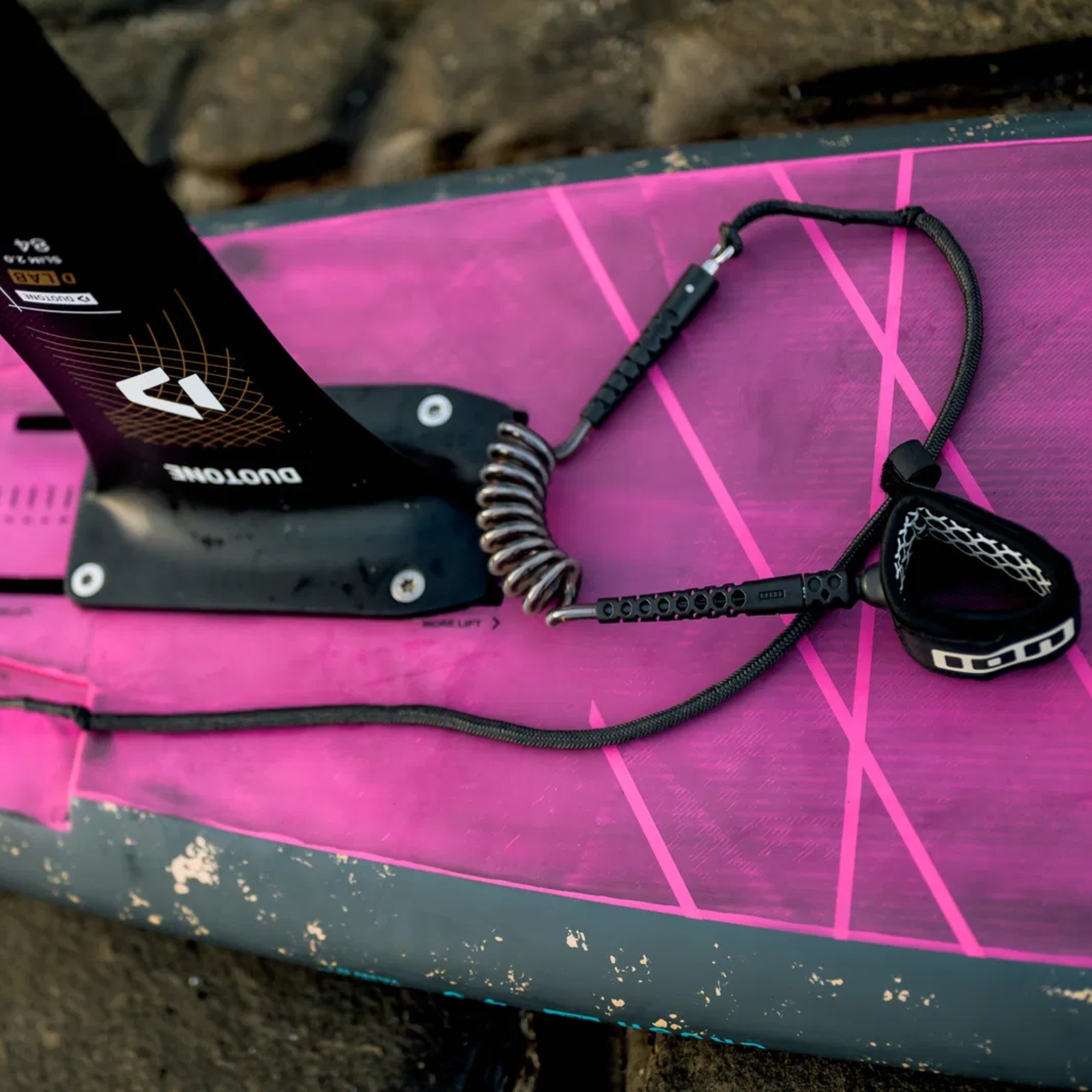 In wingfoiling you want a leash that stays short and tidy most of the time, but still gives you enough play when you fall and the board gets pulled away. The Hybrid concept is built around that idea: minimized overall length with extra leeway when you need it.