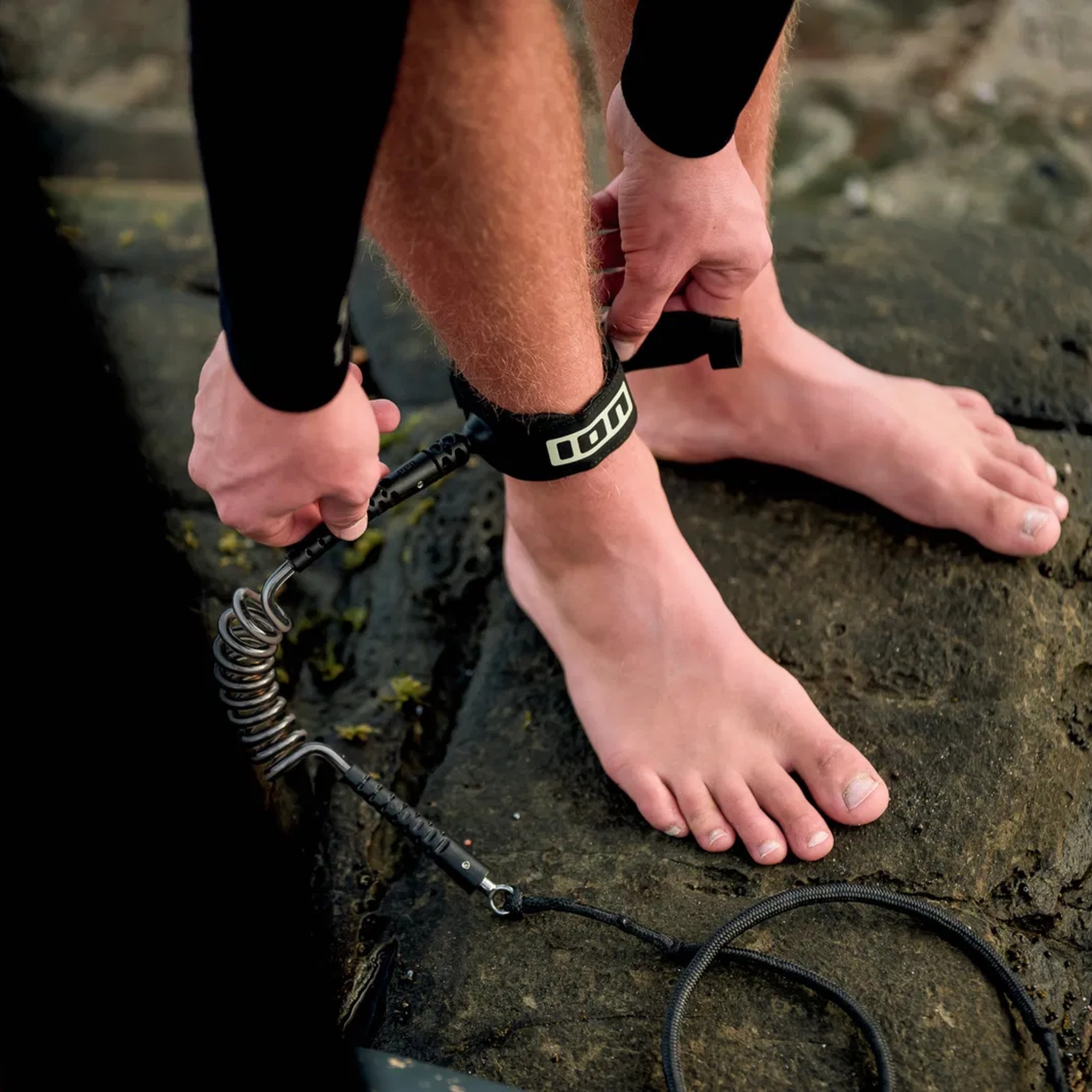 The cuff is made from thin neoprene for comfort and a close fit around the ankle. A honeycomb silicone print improves grip to reduce slipping, and the Hyplaon exterior adds abrasion resistance for regular spot use. An easy-to-grip loop makes handling and release quicker.