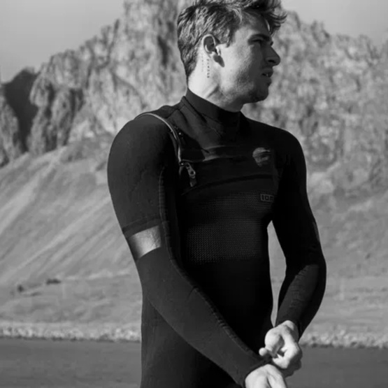 On the outside, the 100% recycled Max_Flex lining increases elasticity by 30% and dries faster thanks to a micro-channel structure that disperses water. The Ultralight_Foam, partially made from oyster shell powder, keeps the wetsuit lightweight and supple without compromising durability.