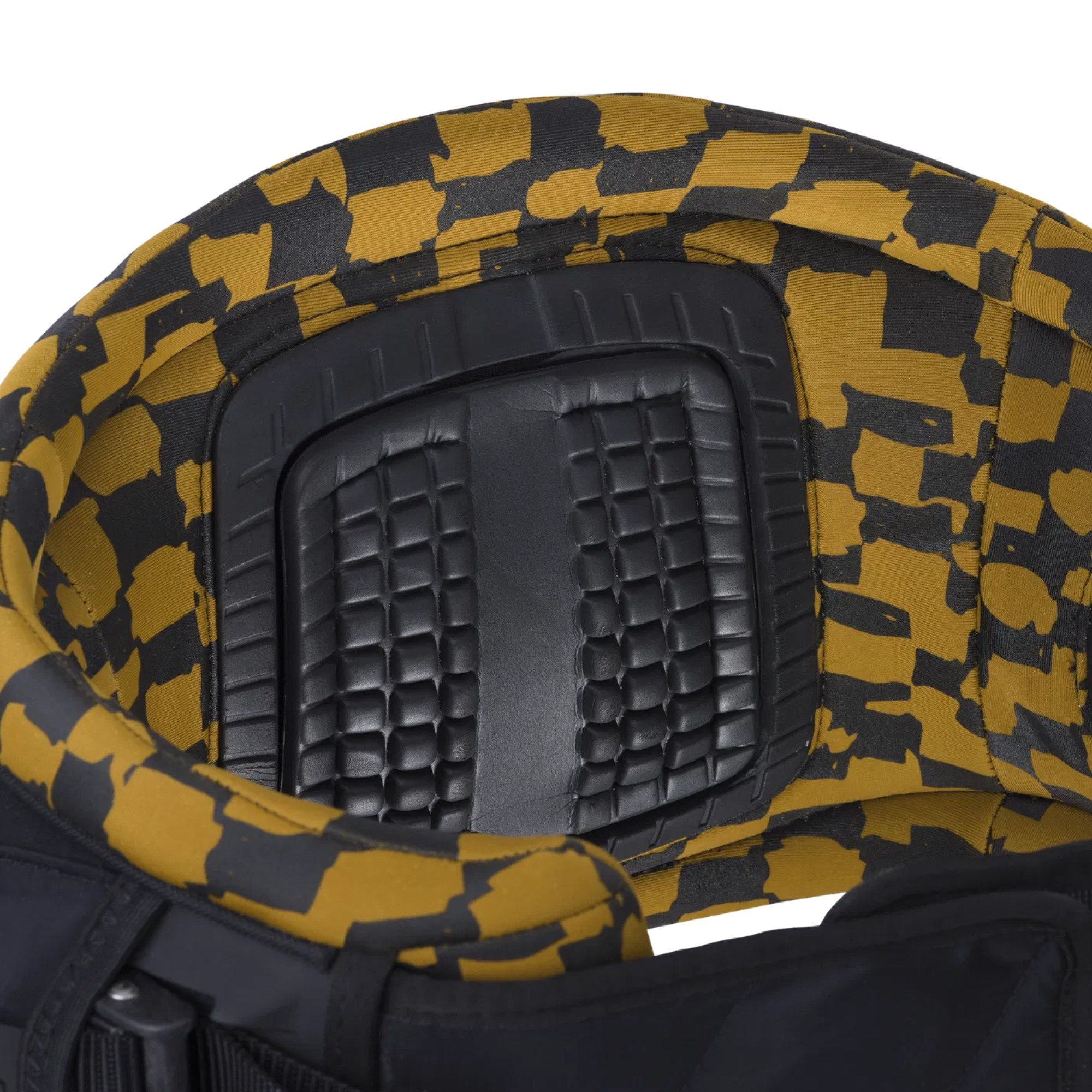 At the core is the 3D Molded Curv hard shell. It uses a rigid central “spine” to support the back, while the side sections stay more flexible so the harness can wrap naturally around your body and still allow hip movement.