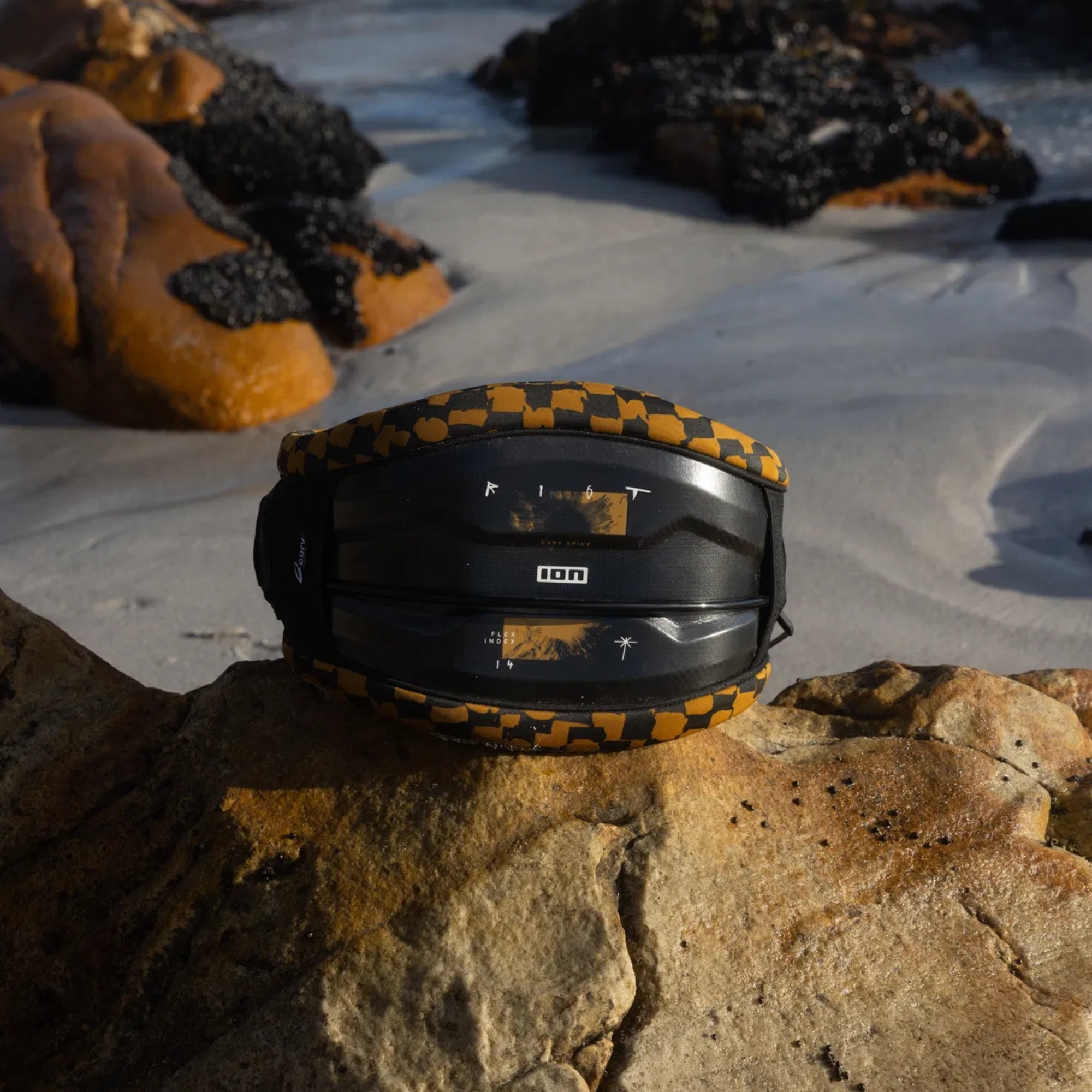 ION Riot Curv Kite Waist is a men’s waist harness built for high back support and precise control under load. The 3D-molded Curv hard shell keeps the center rigid for support while the sides stay more flexible for natural movement. It comes as a complete set with the Spectre Bar 2, hook, Kite_knife Multitool 2.0, D-ring, and a safety handle.