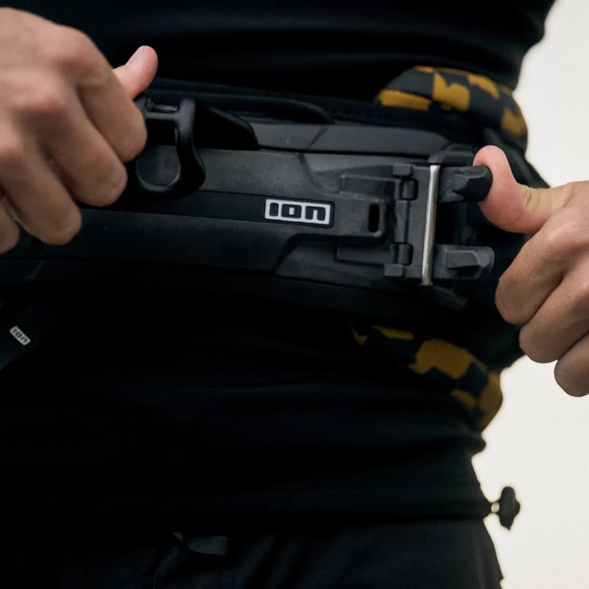 Next to the spreader bar there’s a Leash D-Ring attachment point, and you can choose the side depending on preference. The Kite_knife Multitool 2.0 combines a safety knife with useful tools (TX20 Torx and PH3) for quick fixes on the spot—handy for footstraps and ION’s modular hook system.