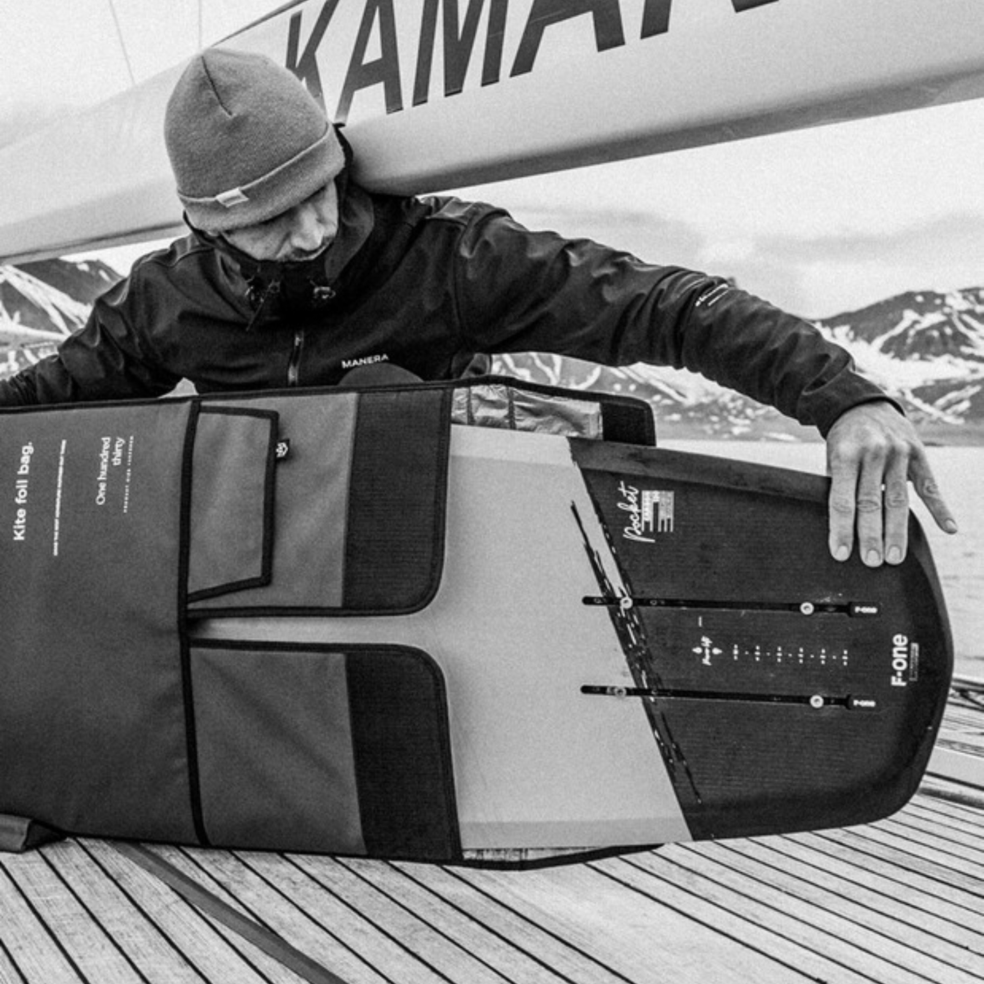 Manera Kite Foil is a dedicated board bag developed specifically for kite foil boards. Its design allows the board to be stored and transported with the foil mast still mounted, reducing setup time and minimizing the risk of damage.