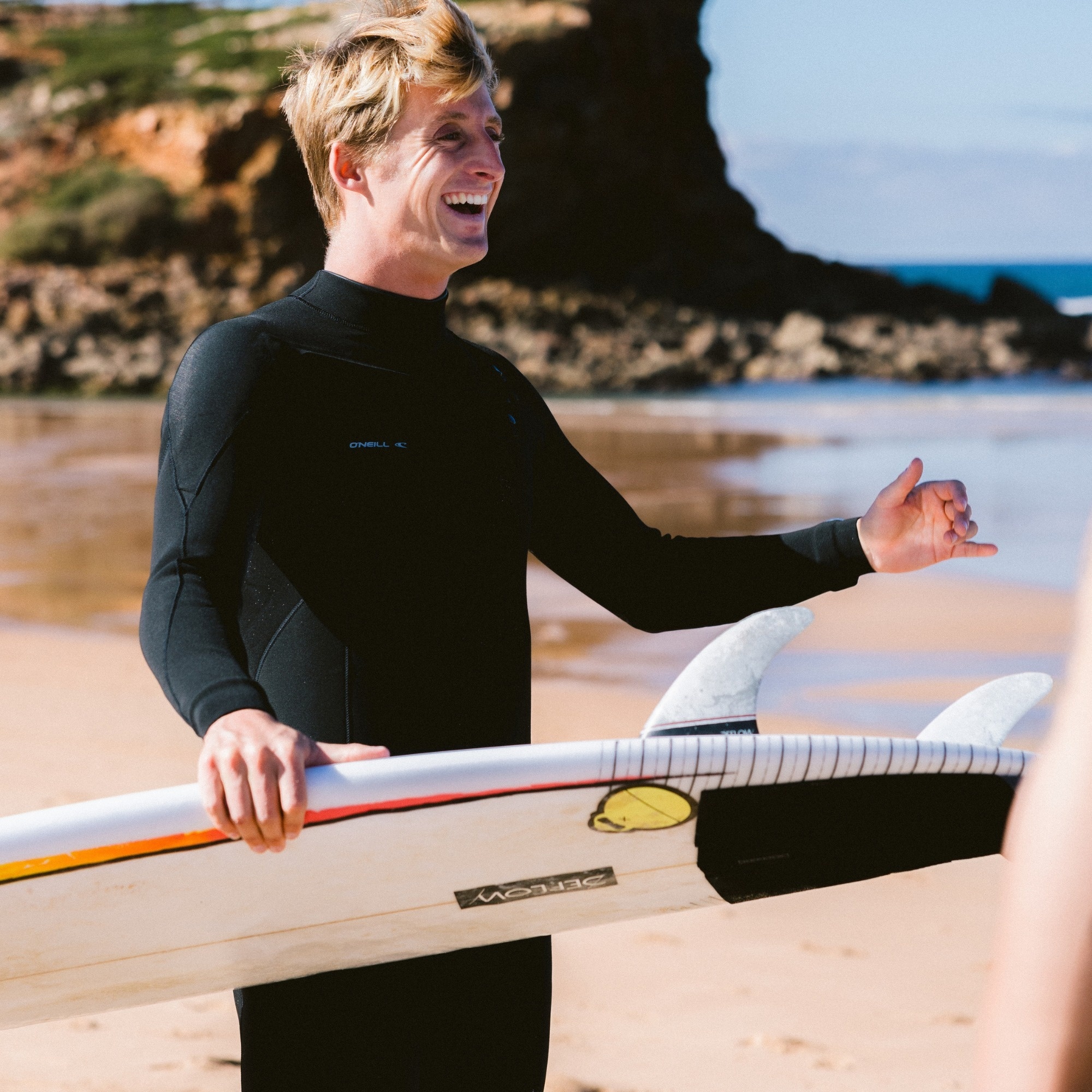 The zip from the lower back to the collar is secured against accidental unzipping by a flap at the collar. The minimal amount of seams increases the wetsuit's flexibility in all directions. The classic O'Neill graphic and thoughtful cut maintain a timeless style.