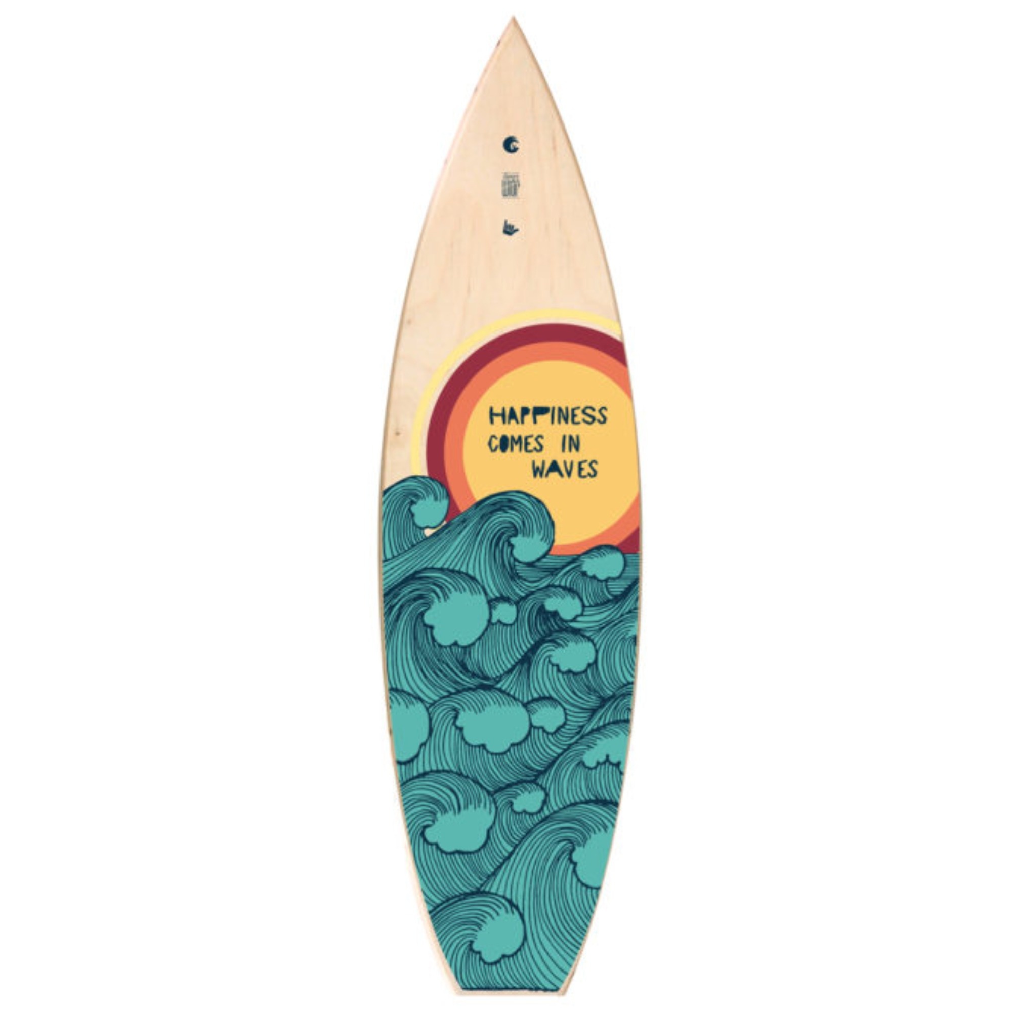 Happiness is a decorative board designed for those who appreciate surf culture, summer energy and natural materials. It works equally well as a wall decoration or as a display piece on a shelf — at home, in an office, a surf shop or any surf-related space.