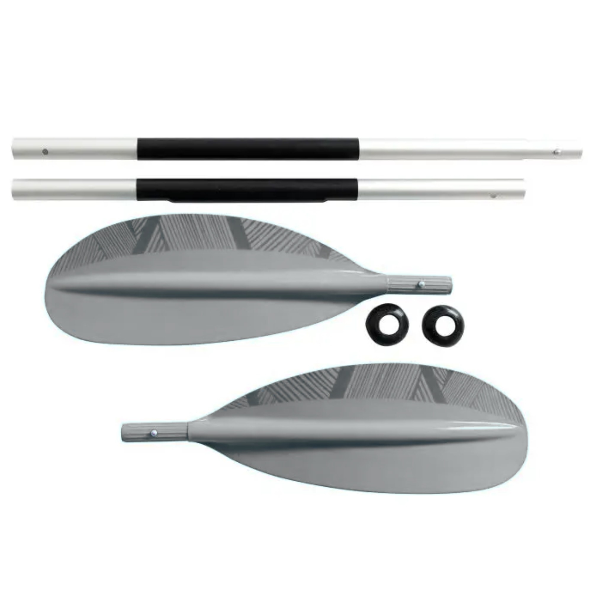The aluminum shaft (29 mm diameter) ensures good rigidity and resistance to wear. Blades made from reinforced polypropylene (40% fiberglass) offer long-term durability and efficient paddling performance.