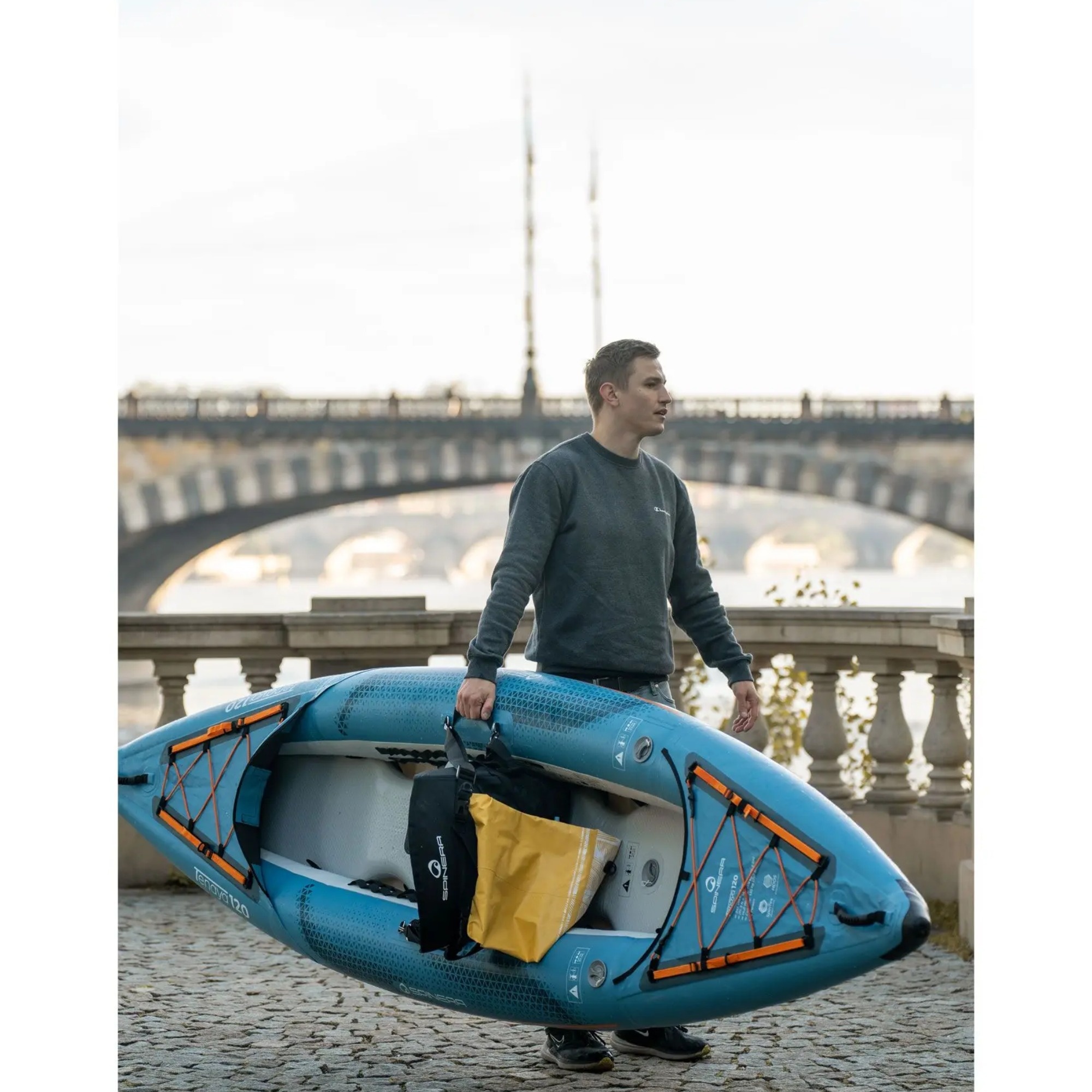 The hull features durable Spintex side tubes and a rigid 8 cm HDDS (High Density Dropstitch) floor, ensuring stiffness and responsiveness comparable to hard-shell kayaks while remaining lightweight and portable.