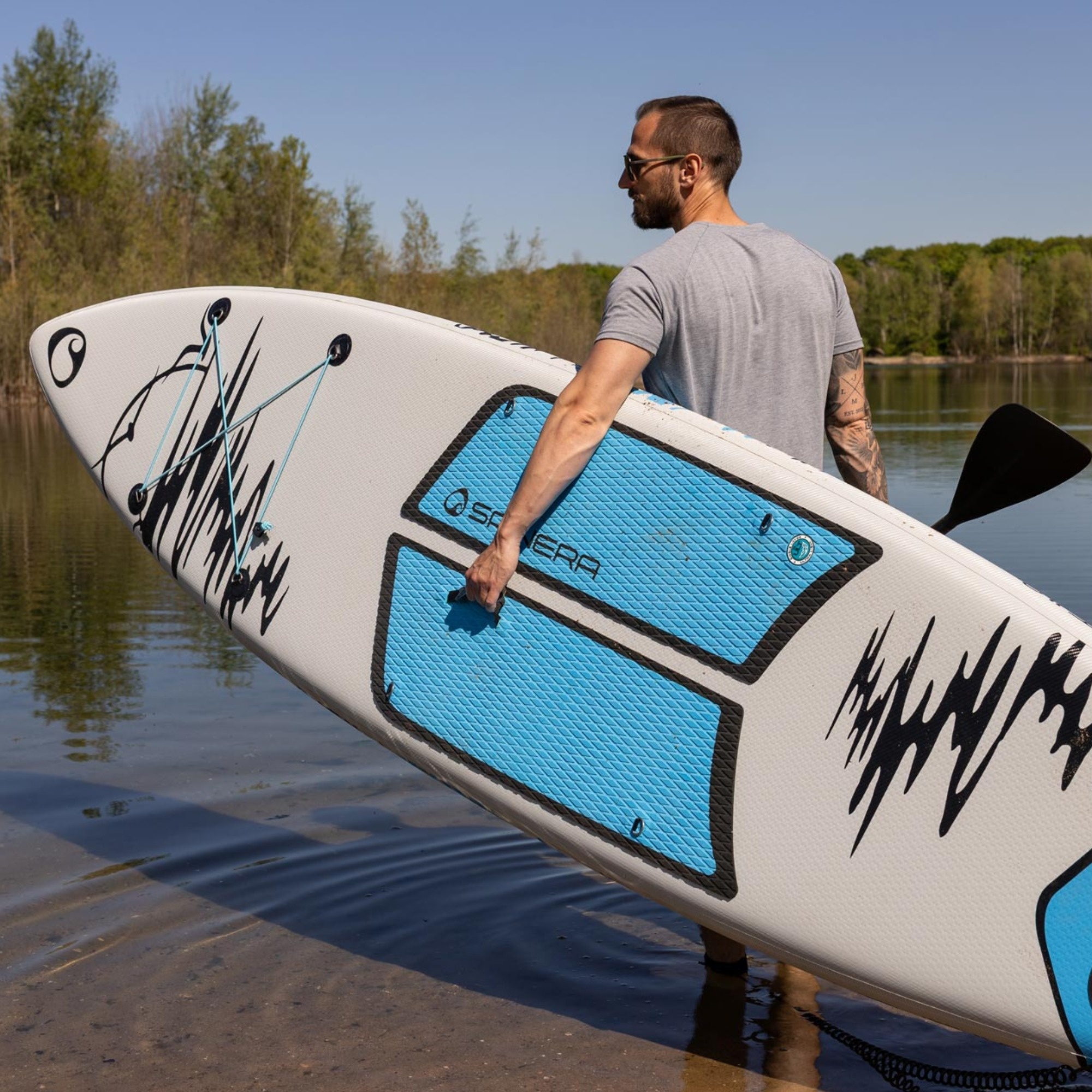 Includes paddle, 2 fins, pump, backpack, and repair kit – fully equipped