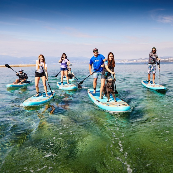 This version includes a kayak seat and a 4-piece 2-in-1 paddle that can be configured either as a standard SUP paddle or as a double-blade kayak paddle. It allows you to switch from standing to seated paddling within minutes – useful for longer distances, paddling in wind, or simply changing position to rest your legs.