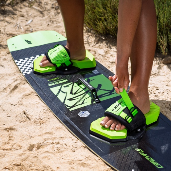 CrazyFly Lock Binding II is a lightweight, comfortable kiteboard binding designed for performance and durability. Featuring a no-Velcro construction, flexible footstraps, and dual-density EVA pads with ergonomic 3D shape, it offers a secure fit and all-day comfort. Compatible with both barefoot riding and neoprene boots. Ready to ride straight out of the box.