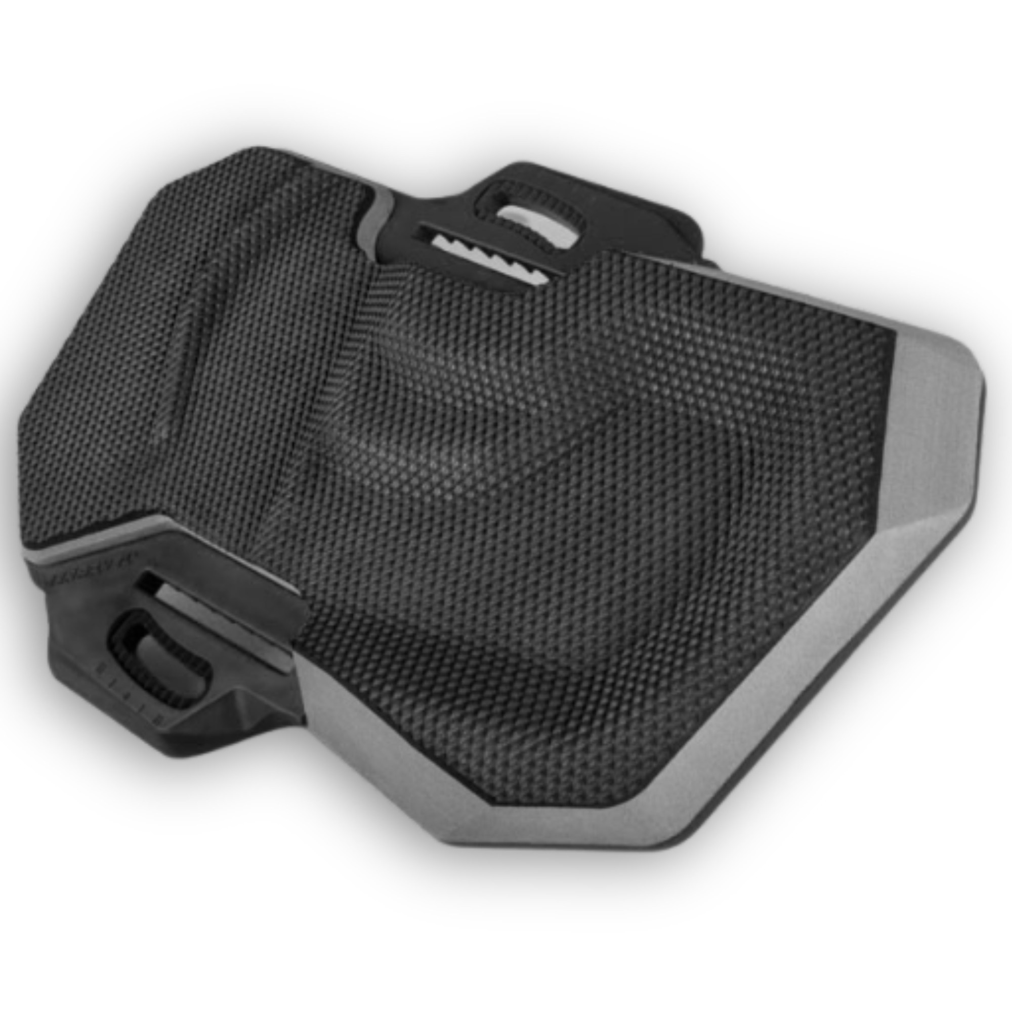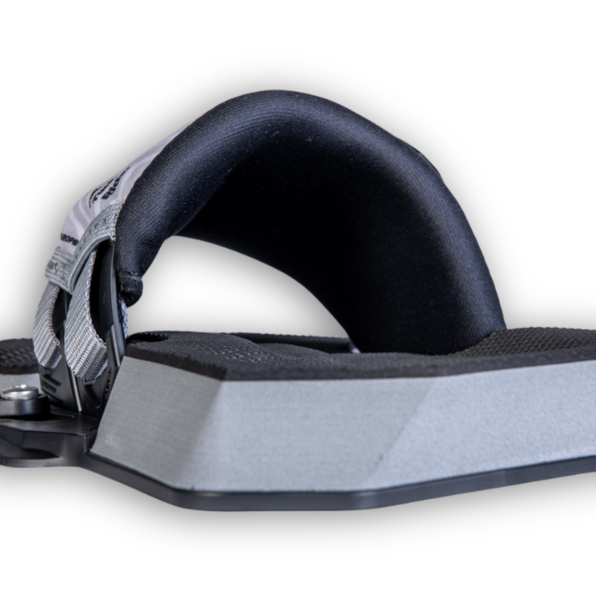 The ergonomic 3D-shaped EVA footpad with dual-density foam ensures optimal comfort and shock absorption. The diamond grip texture channels water away and keeps your feet locked in even when wet. Heel support, arch support, and a raised toe bar enhance control and comfort, even during long sessions.